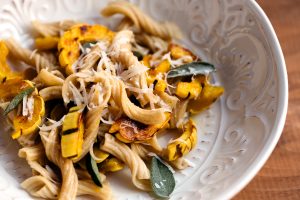 - Pasta Kit 2: Fresh heritage wheat garganelli with roasted butternut and delicata squashes, brown butter, and sage. $26