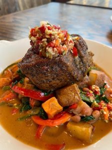 - Beef Bourguignon, $27.95: All-natural beef braised in red wine and veal demi-glace with vegetables, mushrooms, bacon lardons, and herbs. Served with mashed potatoes.