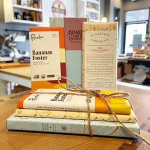 St. Kilian’s Cheese Shop provided a bundle of three craft chocolate bars for sale.